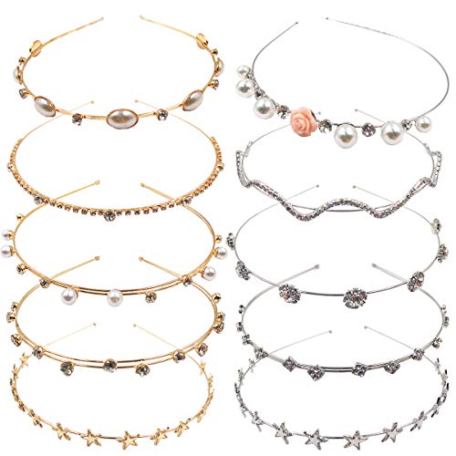CellElection 10PCS Crystal Headband Pearls Flower Hairbands Jewelry Rhinestone Fashion Beaded Headbands Gold Sliver…