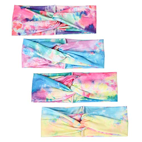Boho Stretch Headbands Set for Women, Bohomian Tie Dye Knotted Turban Wide Elastic Criss Cross Twisted Head Bands Wrap…