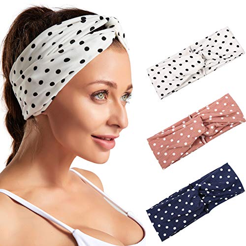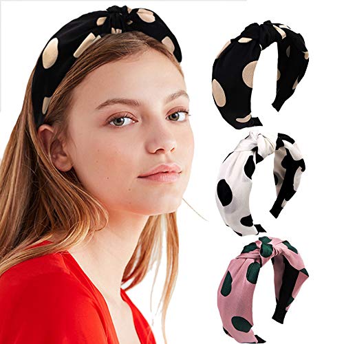 Campsis Fashion Knotted Headbands Dot Hair Hoops Wide Flexible Knotted Headwear for Women and Girls Pack of 3