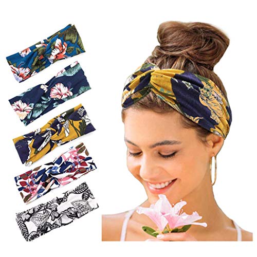 Catery Boho Headbands Criss Cross Head Bands No Slip Fashion Elastic Stretch Wide Hair Bands for Women(Pack of 5) (Boho)