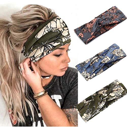 Catery Boho Headbands Criss Cross Headband Bohemia Floal Twist Head Wrap Hair Band Vintage Stylish Elastic Turban…