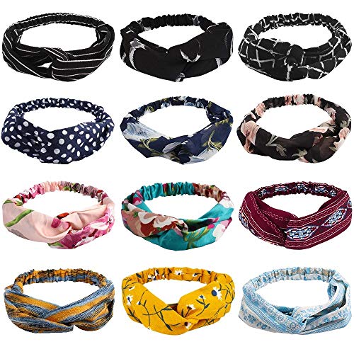 Araluky Beach Headbands for Women, Yoga Soft Floral Knot Fabric Cloth Cute Boho Criss Cross Elastic Fashion Head Wraps…
