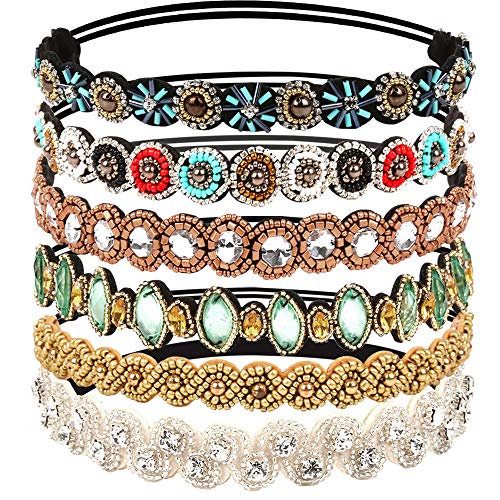 Teenitor 6pcs Rhinestone Beaded Headband, Elastic Jewelry Hair Bands for Lady Women Girl Hair Accessories 20-26.8…